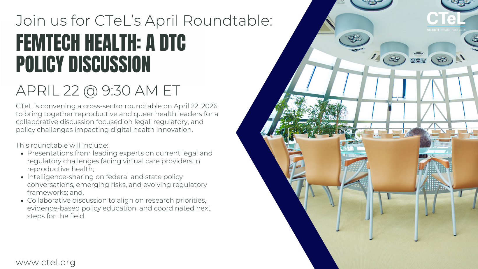 If interested in attending this roundtable, please reach out to April (april@ctel.org) or Lydia (lydiaH@ctel.org) for more information!